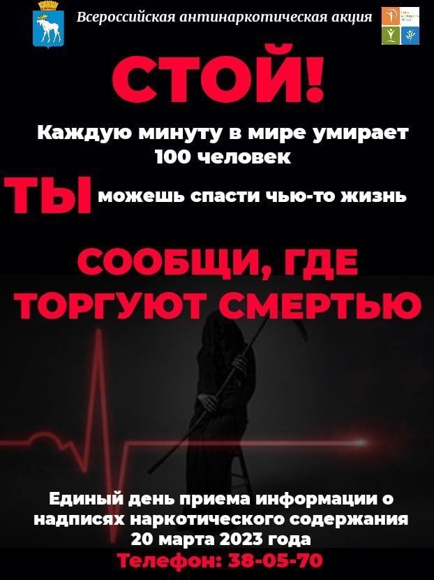 “Сообщи, где торгуют смертью” – Общероссийская антинаркотическая акция. 20 марта – единый день приема информации о надписях наркотического содержания.