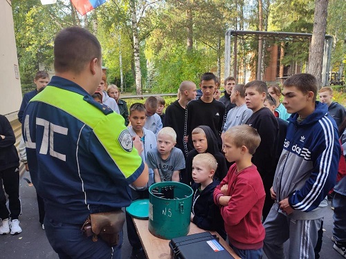 Для беседы с автоинспекторами здесь собрались более 150 ребят в возрасте от 7 до 14 лет. Темой встречи стало обсуждение последствий, к которым приводят ошибки при участии в дорожном движении и необдуманное поведение на дороге.