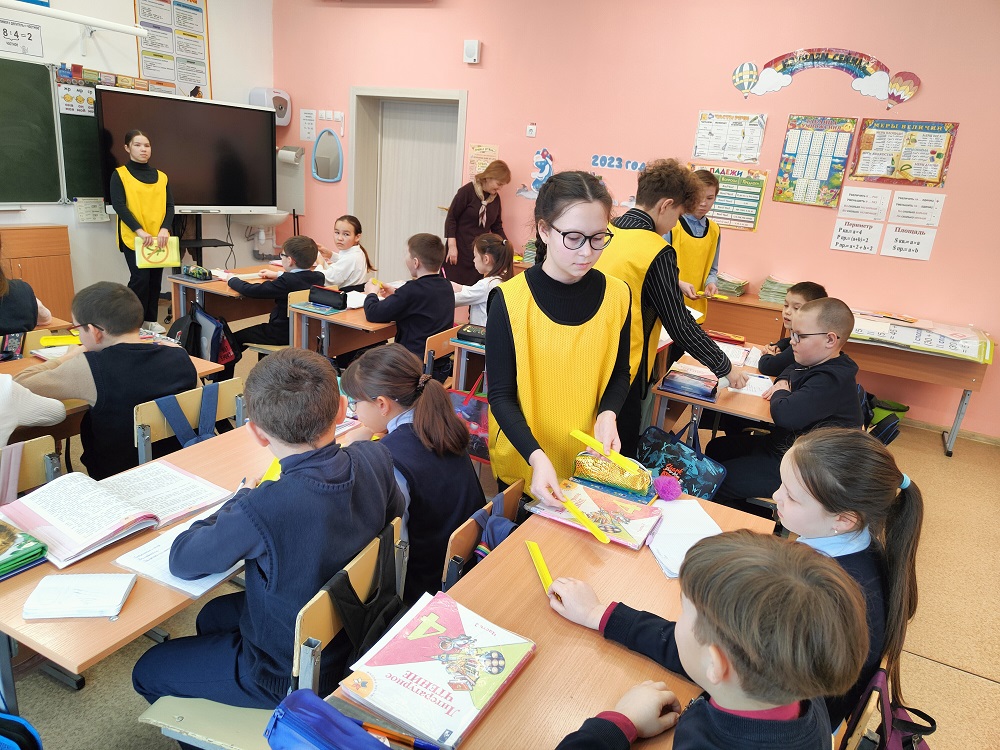 Каждому участнику мероприятия вручили световозвращающий браслет, который можно прикрепить на одежду или к школьному рюкзаку. Контролировать их использование детьми будут активисты родительского патруля, юные инспекторы движения и педагоги.