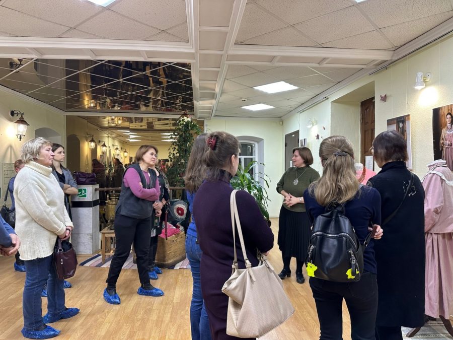 Сегодня руководитель Фольклорного объединения «Царёв город» Мария Валентиновна Смирнова провела экскурсию по выставке «Одежда как прежде» для коллег из Национального музея Марий Эл им. Т. Евсеева.
