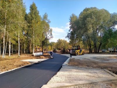 Сотрудники МУП “Город” активно продолжают работы на дорожно-тропиночной сети. Завершается укладка первого слоя асфальтобетонного покрытия на центральной аллее.