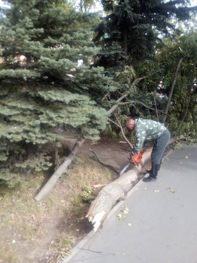 Работники МУП “Город” продолжают устранять последствия грозы, убирают сломанные деревья с улиц города.