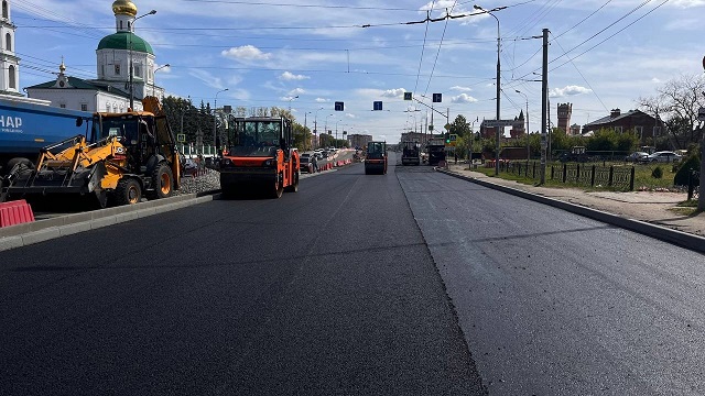 Сегодня дорожники укладывают новое асфальтобетонное покрытие на участке от улицы Вознесенской до улицы Советской.
