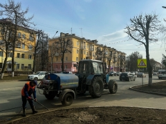 Со вчерашнего дня три трактора вышли на улицы города, чтобы очищать от грязи барьерные ограждения и тротуары. Работа начинается с магистральных центральных улиц и далее техника будет продвигаться в другие районы города.