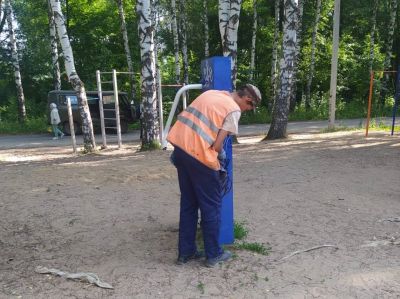 В Йошкар-Оле работники строительного участка МУП “Город” приводят в порядок спортивные конструкции