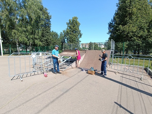 В Йошкар-Оле техническая служба ДК им. Ленина продолжает работы по ремонту элементов скейт-парка