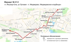 Маршрут №21С «ул. Луговая - Медведевское кладбище» будет работать утром и вечером по рабочим дням. С расписанием можно будет ознакомиться на сайте http://троллейбус12.рф/