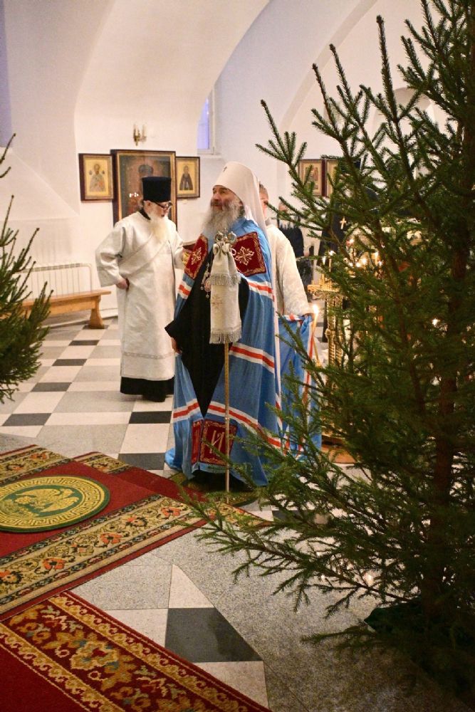 После богослужения владыка Иоанн обратился к собравшимся с архипастырским словом, напомнив евангельские события, как волхвы пришли за звездой в Иерусалим узнать, где родился царь Иудейский. С этим вопросом они пришли к царю Ироду, получили ответ от дворцовых книжников, что Мессия рождается в Вифлееме, – и поспешили туда поклониться Богомладенцу, принести от чистого сердца Ему дары. А царь Ирод, уязвленный завистью, замыслил уничтожить, как он думал, своего соперника-царя – и послал в Вифлеем воинов с повелением умертвить всех младенцев от двух лет и ниже…