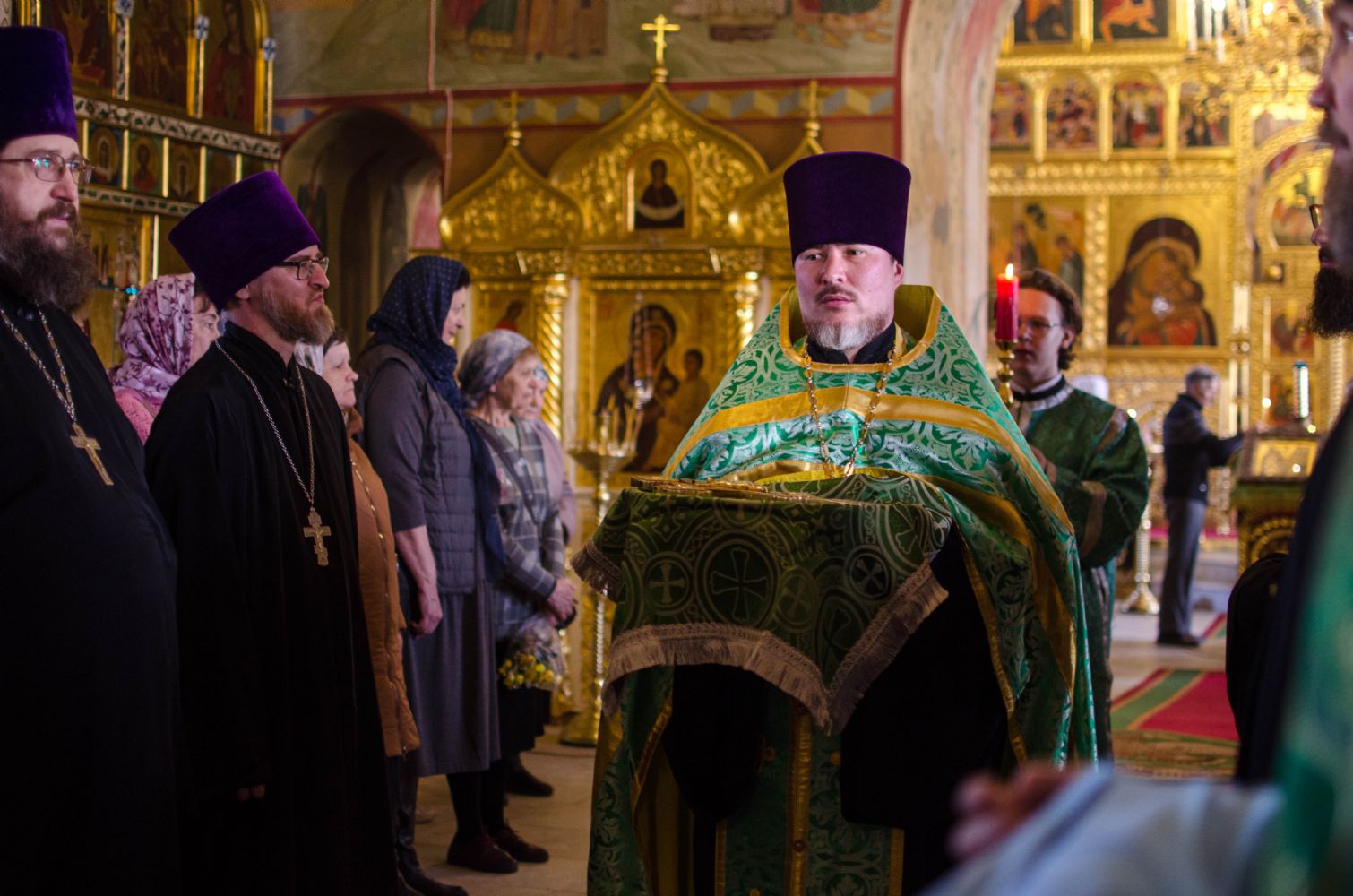 Владыке сослужили секретарь Йошкар-Олинского епархиального управления иеромонах Серафим (Пасанаев), настоятель собора протоиерей Евгений Кутырев, клирики собора и протодиакон Михаил Козловский. Песнопения исполнял хор собора под управлением регента Ангелины Бабиной.