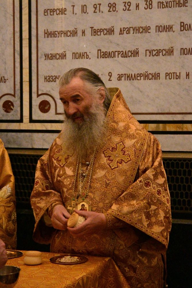 Далее митрополит Санкт-Петербургский и Ладожский Варсонофий прочитал молитву о Предстоятеле Русской Православной Церкви — Святейшем Патриархе Кирилле.
