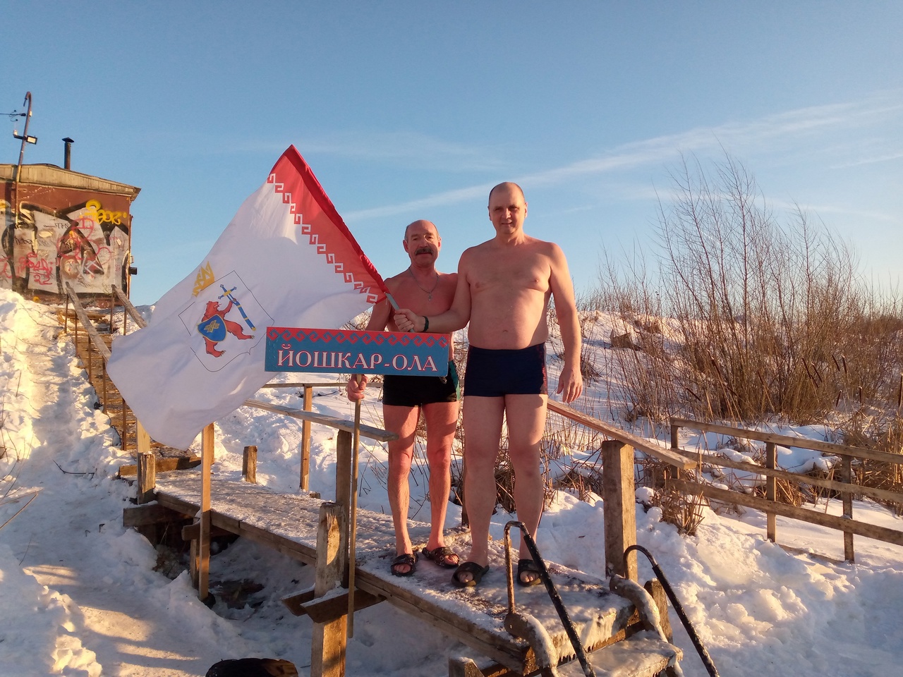 На берегу реки Большая Кокшага, рядом с городским пляжем, стоит небольшой теплый вагончик с надписью «Моржи». Оказывается, это место любители зимнего плавания облюбовали еще в середине 60-х годов прошлого столетия. Потом, какое-то время, по словам членов клуба, на этом месте размещалась спасательная служба. Вернулись йошкар-олинские моржи на свое родное место чуть более трех лет назад, до того долгое время их вагончик стоял рядом со стадионом «Динамо».