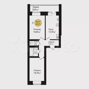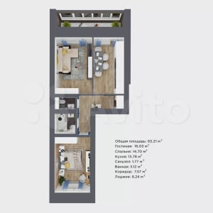 - Общая площадь: 65.2 м²